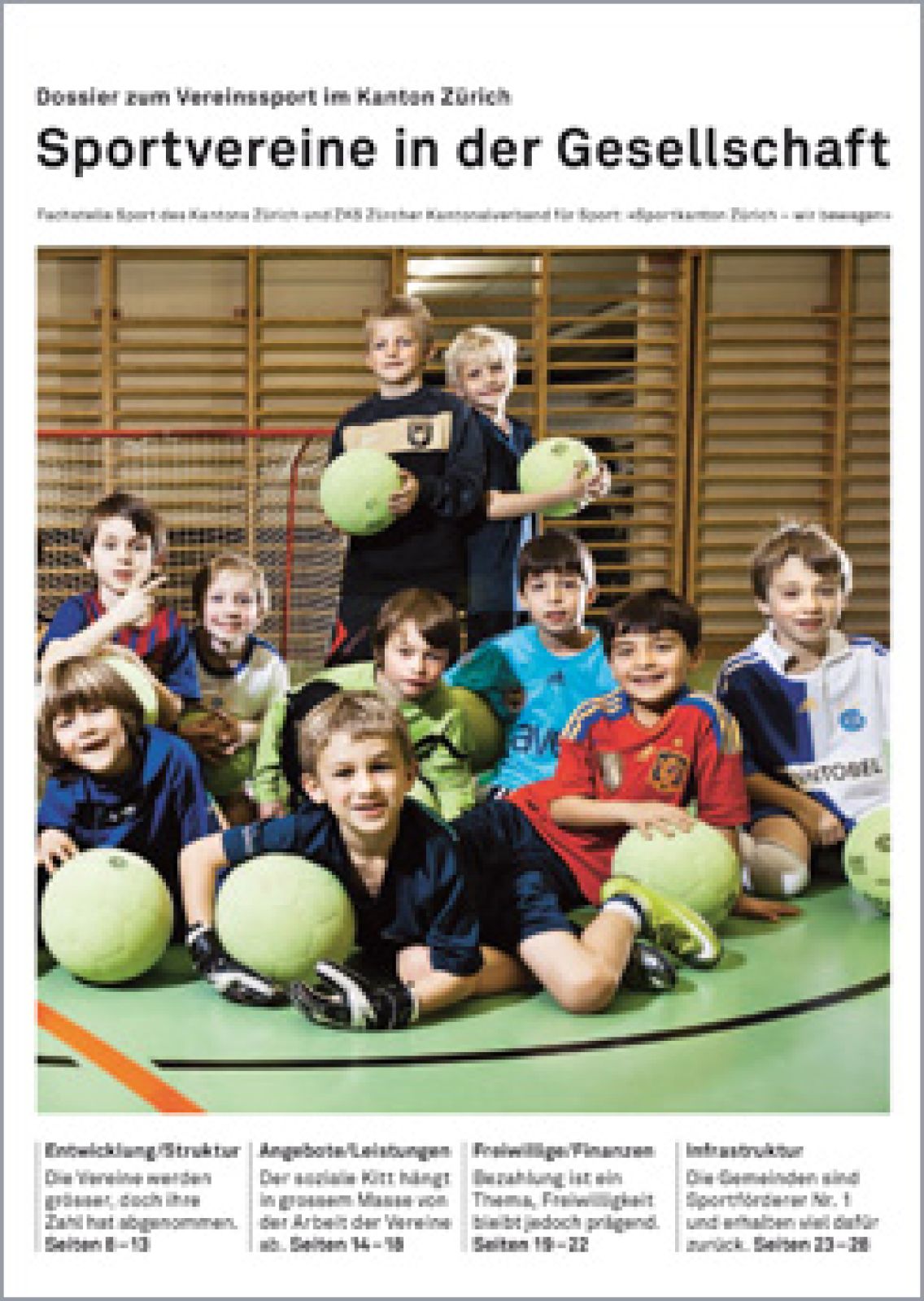 Das Dossier 2013 des Sportkantons Zürich widmet sich anhand diverser Praxisbeispiele dem Leistungsangebot und dem Netzwerk für Gemeinden und Sportvereine im Kanton Zürich.