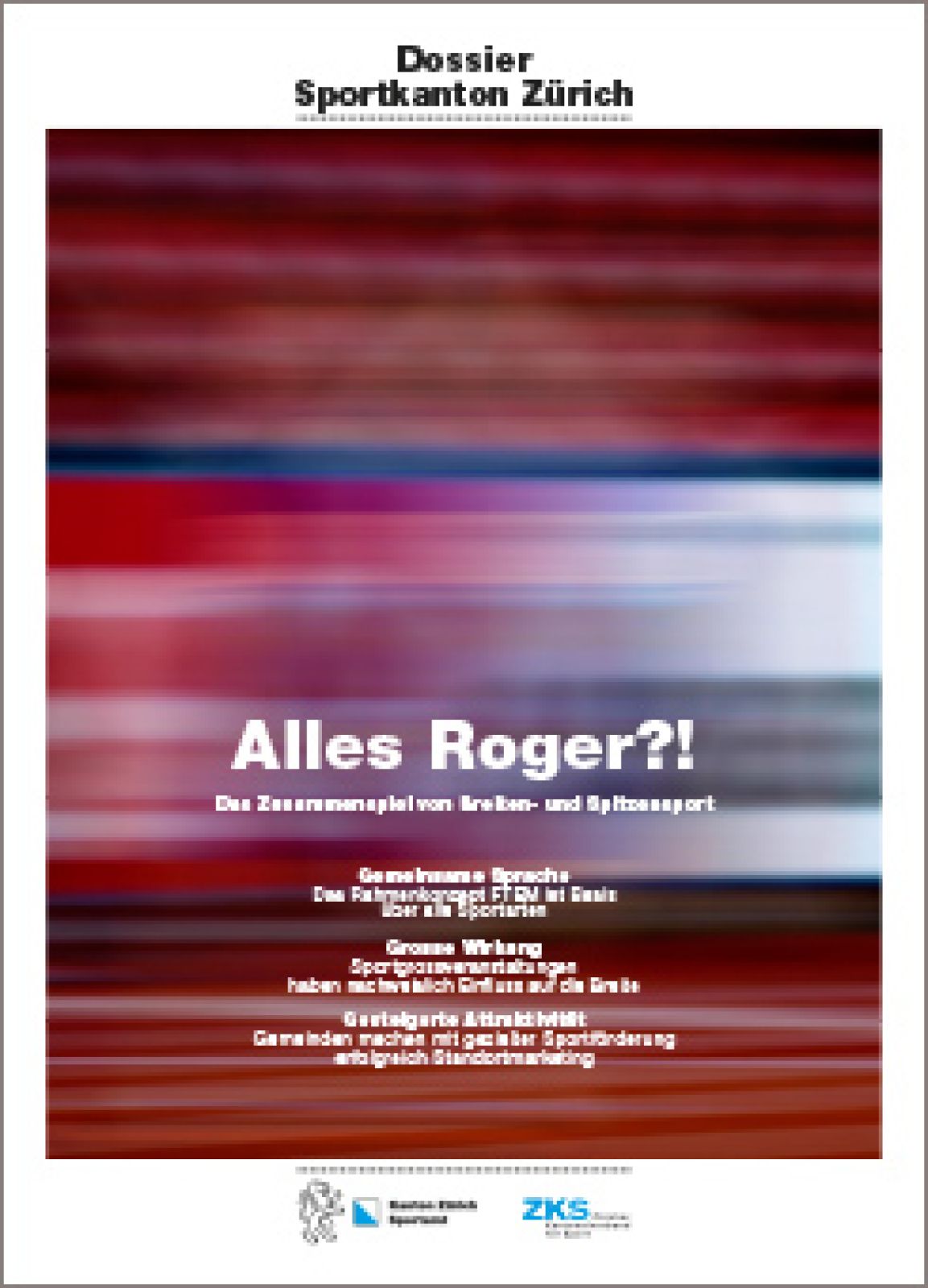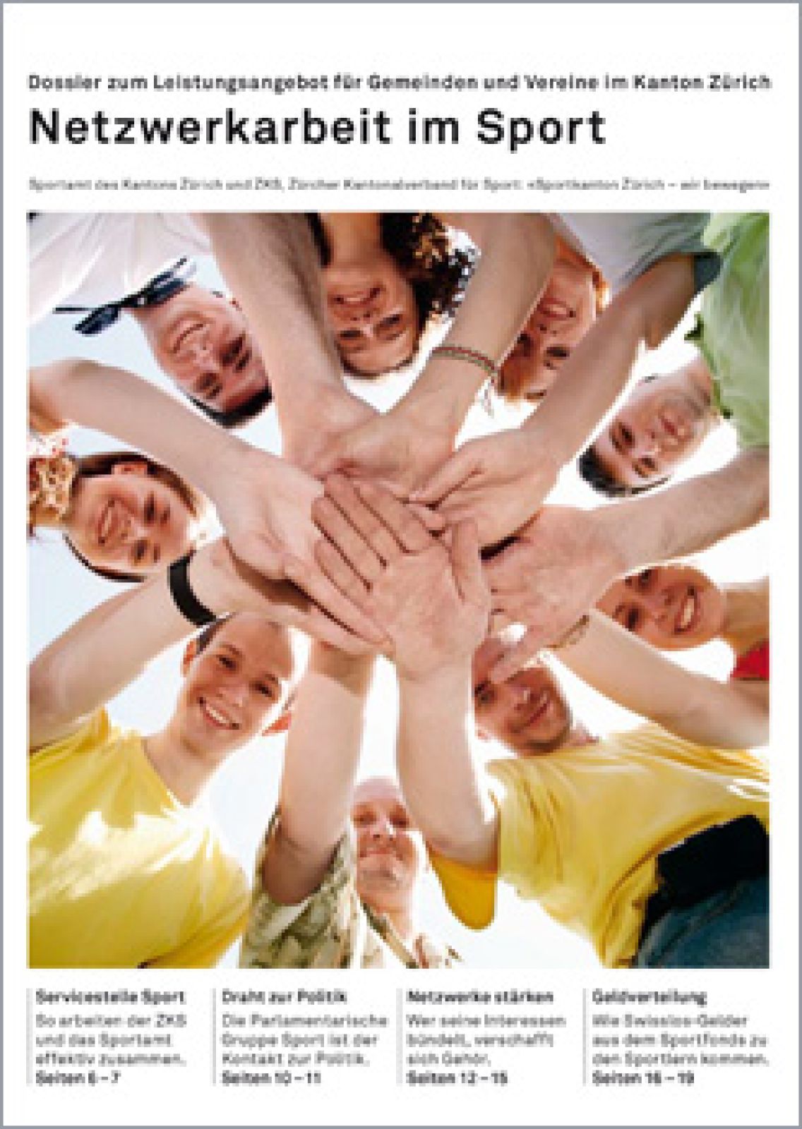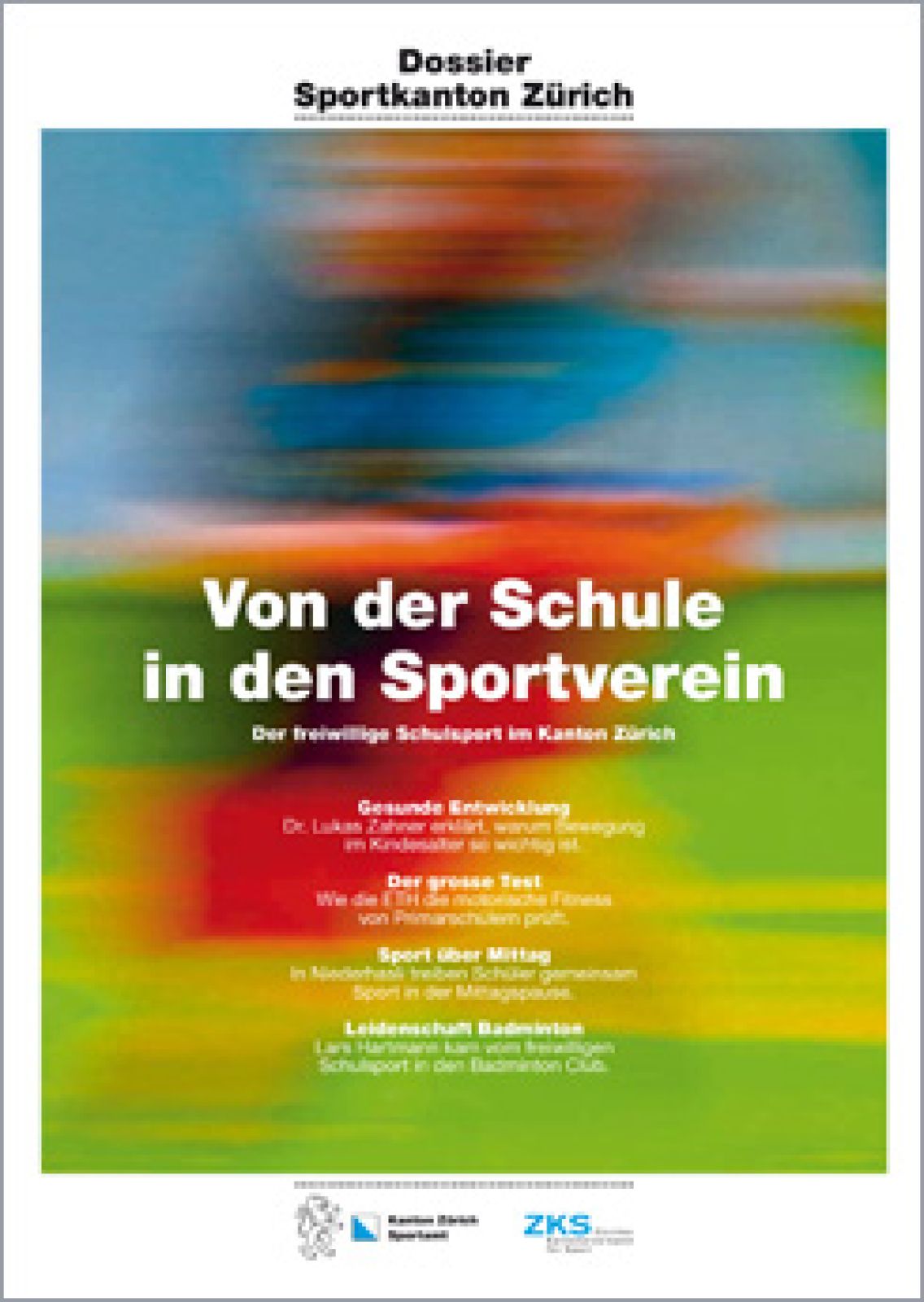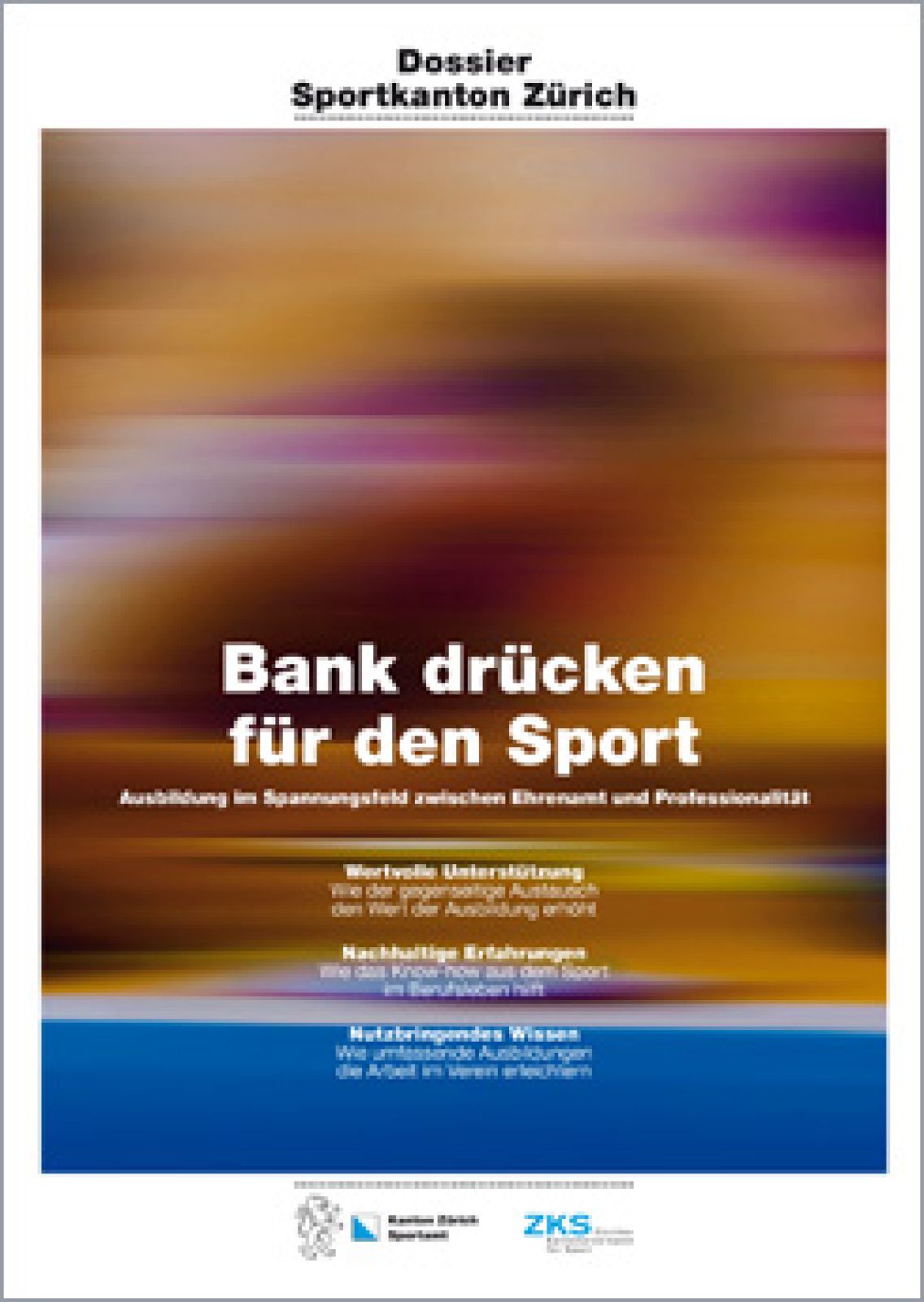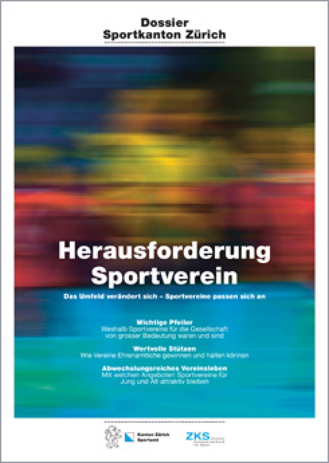 Der Sportkanton Zürich hat sich zum temporeichen Schrittmacher bei der Dienstleistungs- und Interessenvertretung des Vereinssports entwickelt. Für die öffentliche Sensibilisierung und um den angeschlossenen Verbänden und Vereinen eine Plattform zu bieten, erarbeitet der ZKS in Zusammenarbeit mit dem Sportamt des Kantons Zürich jährlich ein Schwerpunktthema, das in Dossiers publiziert wird.